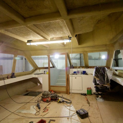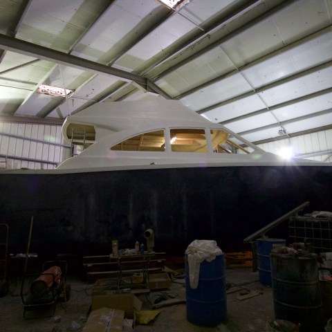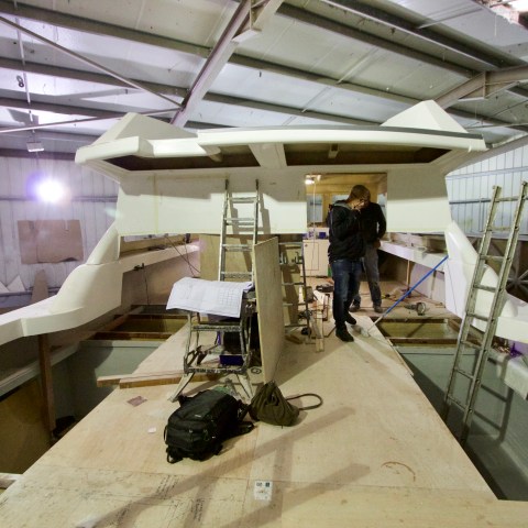 The 14m Catamaran is being built by Powerglide, Wadebridge, Cornwall by Rod Baker.